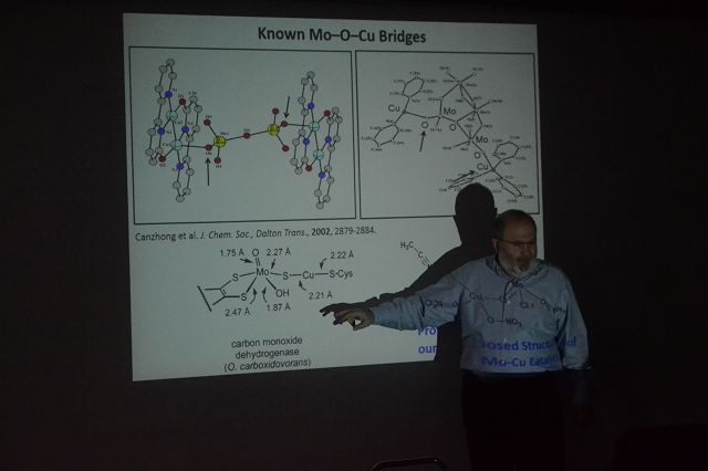 25日,Gozin教授在5號(hào)樓502會(huì)議室進(jìn)行了名為“Development of Novel Detection Chemistryfor Nitrate-containing Explosivesby a Bio-inspired Mo-Cu System”的學(xué)術(shù)講座,該講座是研究生院主辦的“‘21世紀(jì)科學(xué)前沿’系列學(xué)術(shù)講座”之一。Gozin教授深入淺出地闡述了其學(xué)術(shù)成果,并與在場(chǎng)師生進(jìn)行了討論。講座由北京理工大學(xué)材料學(xué)院副院長(zhǎng)龐思平教授主持。